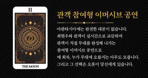 - 관객 참여형 이머시브 공연: 정해진 대본이 없이 관객의 참여로 이야기가 전개되는 몰입형 공연입니다.